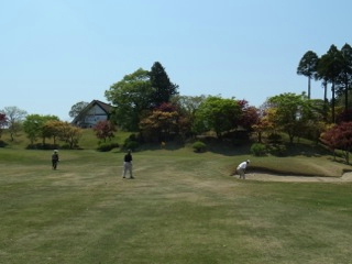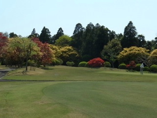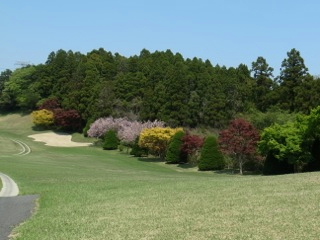 成田ハイツリー名物の春の紅葉です。成田ハイツリーは春の紅葉で知られておりますが、それにとどまらず、植栽が非常に美しい配置をされておりOUT1番の脇にはさりげなくソメイヨシノもあったりして、ティーグラウンドに向かうゴルファーの心を盛り上げ、失意とともにティーグラウンドから戻ってくるゴルファーを癒してくれる配慮です。素晴らしい…