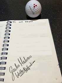 そのおかげで、個人的に貰ったゴルフボール三個・サイン20名ほど(その2週間後開催の全英女子オープンで優勝したノルドクビスト選手含む多くの選手のサイン)のほか、なんとイタリア選手団からはイタリアチームの公式帽子も貰いました。(Colombotto Rossoさん、Molinaroさん、Matteoさんありがとう!)これらはボクの生涯のお宝、誰にもあげないからね!