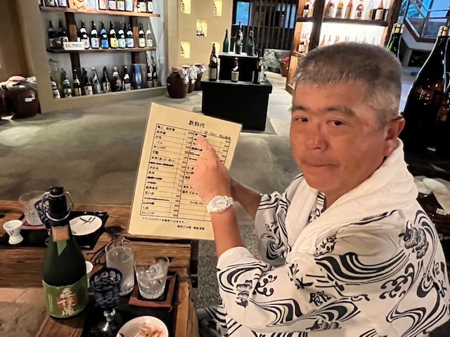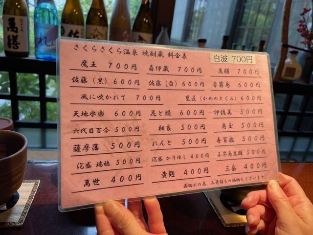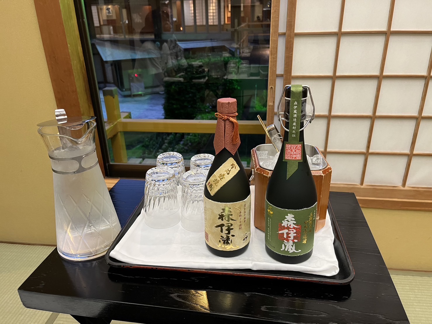 鹿児島空港に到着するとJAL便で早めに到着したテツさんがレンタカーを準備して空港で予定通りスタンバイしています。さすがテツさん!と思いつつも、テツさんが迎えに来てくれていると知っていましたので、そして恐らくそのまま運転するであろうと想定していましたので、羽田のラウンジでそれなりにアルコールに浸って鹿児島入りしました。10分ほどで溝辺カントリーに到着です。スタートまで時間がありますので、本場鹿児島の芋焼酎を飲んで、これからの遠征に妄想を膨らましてウォーミングアップ完了です。焼酎の量が多い(濃い)ゴルフ場でした。手入れもよく、温泉とサウナもあり、とても良かったです。1泊目は、さくらさくら温泉(泥湯で有名)です。宿の近くは何もない場所でロッジに宿泊なので、アルコールと酒の肴をコンビニで買って宴会準備も万端です。ロッジから温泉まで歩いていくのは厳しいので、夕食も兼ねて敷地内のバスで移動します。旅行支援の手続きをしていると、私を待たずに皆さんは森伊蔵を飲んでいます。なんと1杯700円!しかも量がとても多い(飲むグラスとは別のグラスに森伊蔵が多めに用意してあり、自分で濃さを調整します)。魔王も700円、佐藤や赤霧島が600円です。温泉では、各自が泥を塗りたくり乾燥するのを待ちます。しかし、泥を落とすのが大変で、大将の足や背中は、テツさんと二人でこすりましたが、それでも完全には落ちませんでした。食事ではハプニング発生!大将とフロアマネージャがお話をしましたが、その後のフロアマネージャの応対が素晴らしかった。