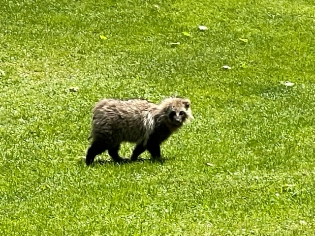 最終日も登別カントリーです。今日は黒ティです。私は青ティより黒ティのほうが良いスコアでした。理由は、コースが分かったからです。大将は、青ティと黒ティでかなりスコアが変動していたように思います。上手い人にとっては距離というのが一つのハンディになるのだと理解しました。あるホールでいきなり大将がOBを打ったのでショボンとすると思い、目の前にいるタヌキを発見して大将にそれを教えると写真撮影に集中してOBを忘れたようでした。良かった良かった。池が効いていてレイアウトも良く、安くて良いコースだと思います。ただ、唯一の欠点はお風呂です。お湯がかけ流しでなくて溜めたままなので、色々な人の皮脂が湯船に沢山浮かんでいて、それを見た瞬間に湯船を出てしまいました。