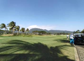 三日目はホテルから車で10分の紅峡谷ゴルフ場です。ホテルをチェックアウトして向かいます。朝一で廻る人は少ないので、日曜日なのに終始詰まることも追いつかれることも、合流してくる方もいない快適なラウンドです。日本語が多少話せるキャディさんが付いて今日は会話が一気に増えます。知人に日本人が居るとか・・・・さすが海南島ですね。